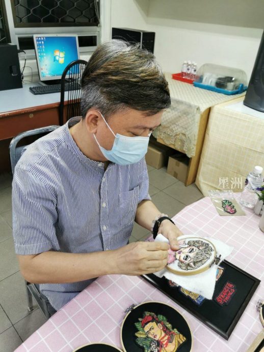 黄伟雄的第一幅刺绣作品,就是“火龙果”,他用了大概3至4天才完成整幅作品;开始时,不满意就重新拆了又做,现在做了数十幅不同类型作品,越做越上瘾。