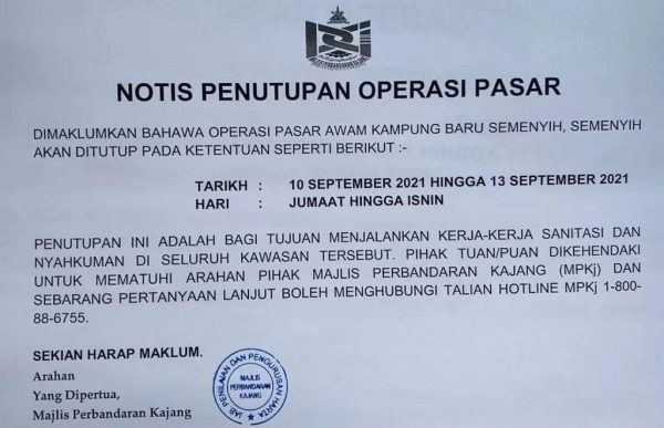 (加影10日讯)士毛月新村巴刹再遭受疫情攻击,目前有4名小贩证实确诊,加影市议会指示从今日(10日)起关闭4天至13日(星期一)。