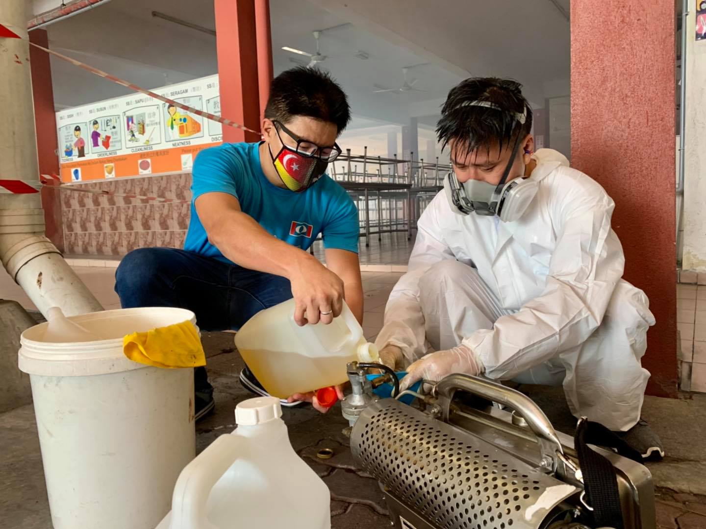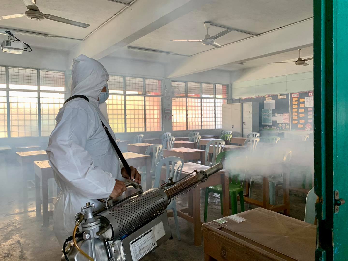 “在了解到仍有许多家长纠结于是否应该遵循教育部的指示,送孩子们返校后,我们便自告奋勇向蔡伟杰献议为此事出力,即义务为学校消毒。”