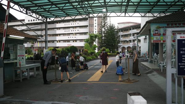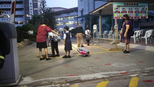 《大都会》社区报记者今早走访吉隆坡南强华小,只见清早6时30分开始,陆续有家长带着孩子来上课,大家根据校方的指示,只将孩子送到校门口,沒有进入校园范围内。