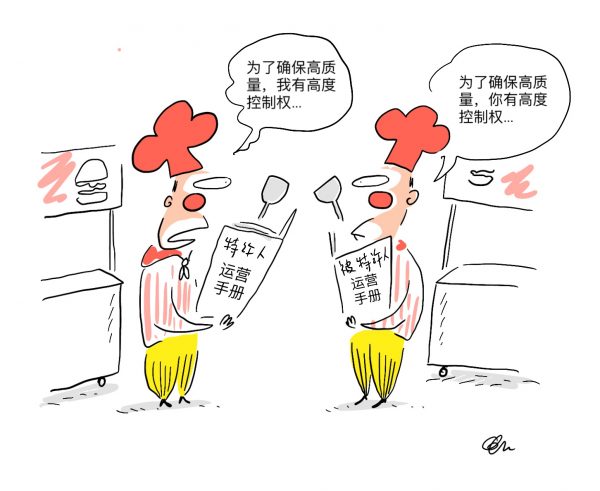 在连锁经营业务中,加盟商必须按照连锁经营制度经营业务,通常记录在“运营手册”(OPERATION MANUAL)中。为了确保客户享受相同质量的商品和服务,特许人将对加盟商的业务运营拥有高度的持续控制权。