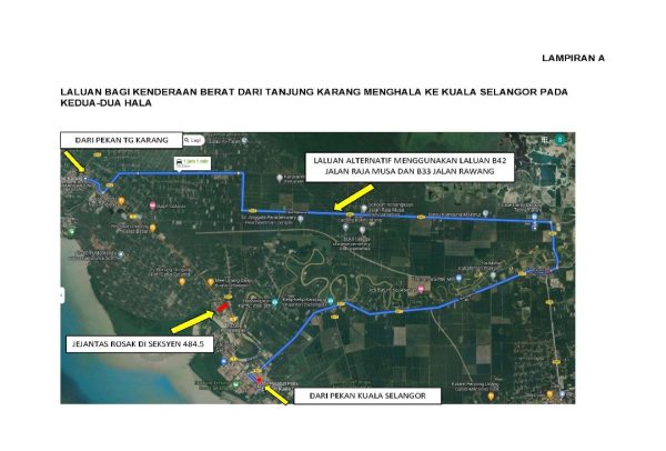 不过,重型车辆则需绕更远的路,从瓜雪镇的瓜雪警区总部(IPD)拐入B27万挠路到八丁燕带,衔接B42路拉惹慕沙路到丹绒加弄镇,替代路全程多耗54公里或1小时多车程。
