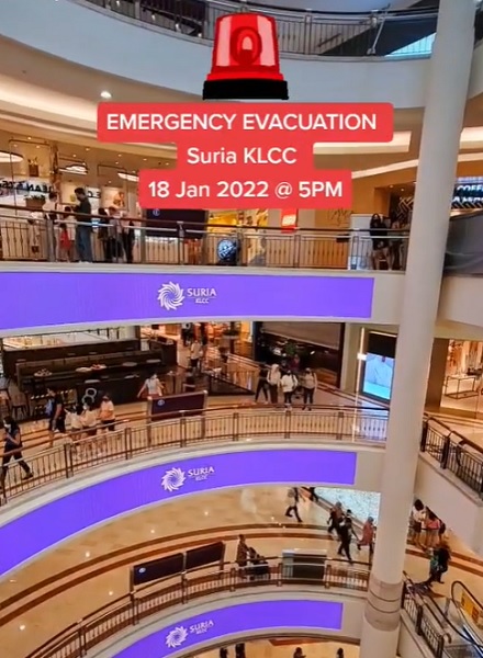 (八打灵再也19日讯)吉隆坡阳光广场(Suria KLCC)昨日下午突然发出撤离广场的紧急播报,令全场所有人火速逃离后,结果原来是有人抽烟而触发烟感报警器,虚惊一场!