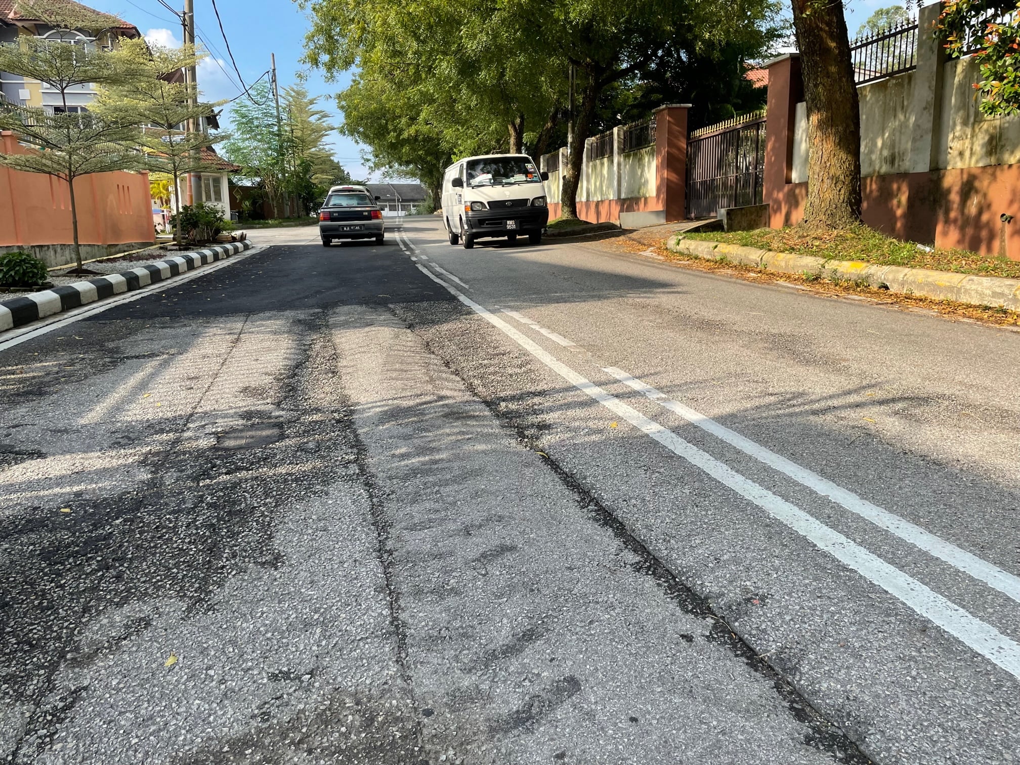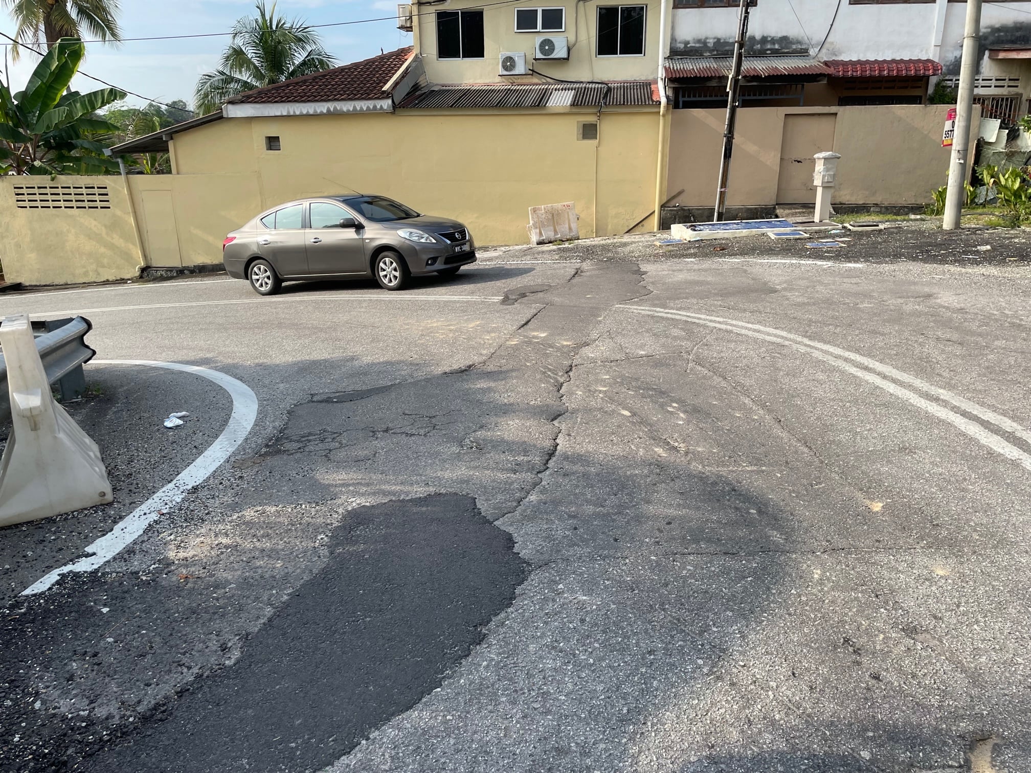 “从万挠会馆街入口处的小桥开始,一直延伸至万挠再也2区,全长1公里的马路均是如此凹凸不平。试想一旦车轮卡洞,骑士被飞抛而起时会有何后果?我们曾向当局投诉,要求关注路况但却没有下文。