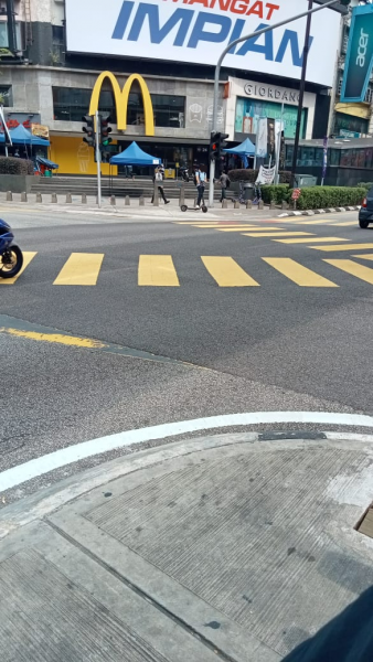 另外,记者在走访途中看见有一名民众骑行着电动滑板车在当地的行人道范围走动;其中,该骑行者依据行人交通灯的指示,透过斑马线骑行至另一边的行人道。