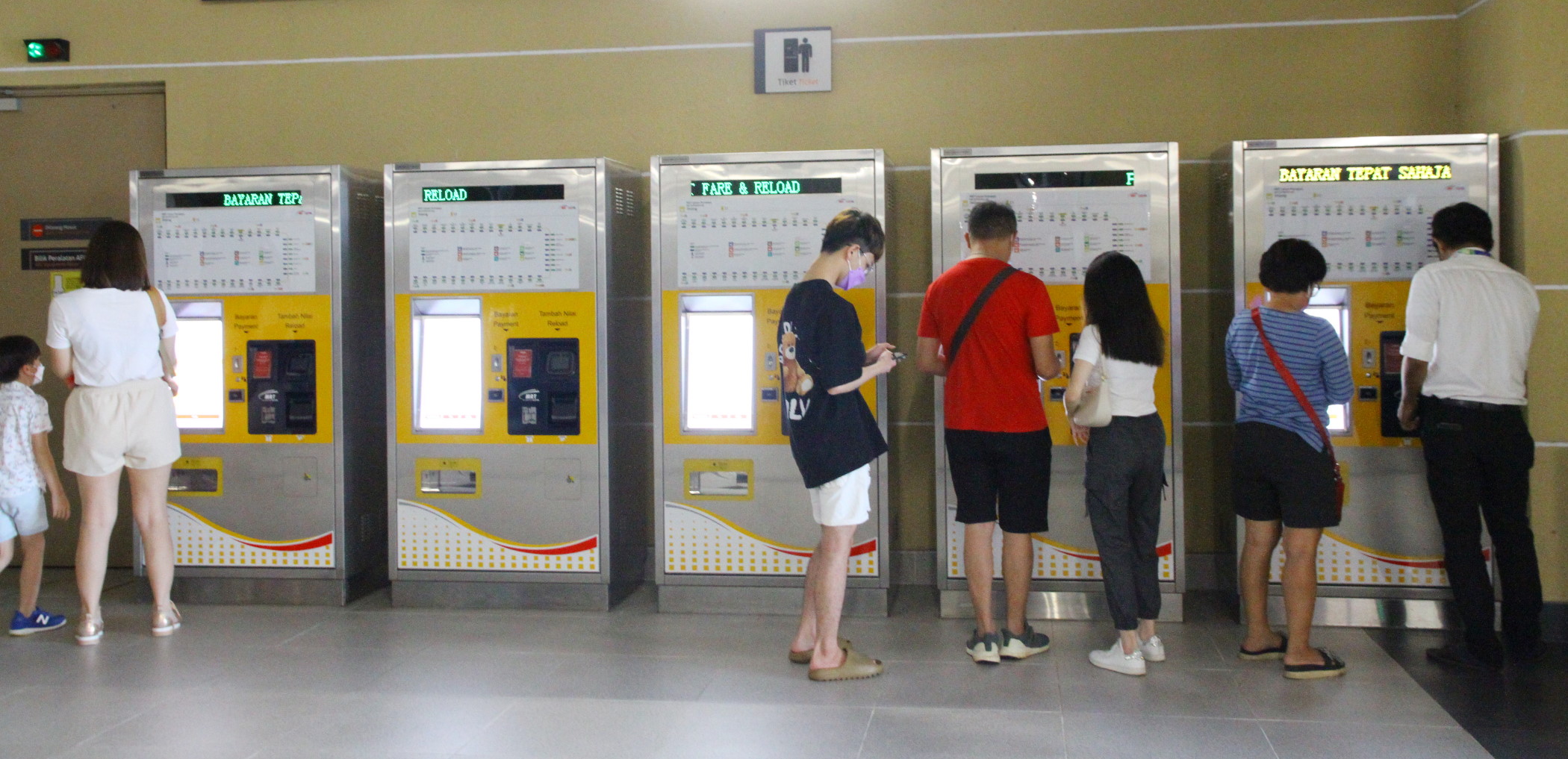 据观察,许多乘客使用一触即通卡(Touch’n Go)搭乘捷运,但也有部分乘客是到捷运站的售票机器购买车票。