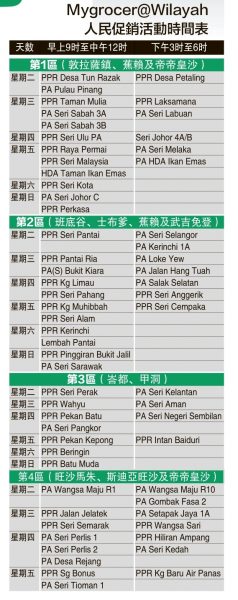 另外,Mygrocer@Wilayah货车分为两个时段,即早上9时至中午12时及下午3至6时前往指定的地点。