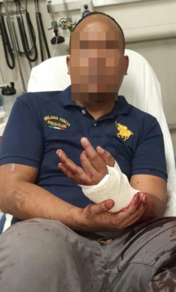 (沙亚南27日讯)1名警长和1在办案过程中,惨遭袭警的分别左手腕和右手腕,惊险万分!