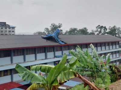 (万挠19日讯)狂风袭击万挠4区,两所学校的屋顶被吹走而大开天窗,使数以千计学生恐难以顺利在5月开课,另有20余部车辆遭从天而降的屋瓦和大树压顶,60房屋蒙受程度不一的损坏。