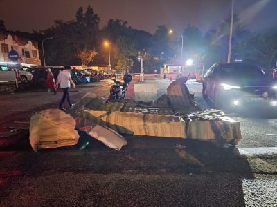 “虽然雨势不大但在狂风吹送下,团结花园、康情花园、万挠百乐岭和敦帝佳花园有多屋和高楼组屋遭破坏。