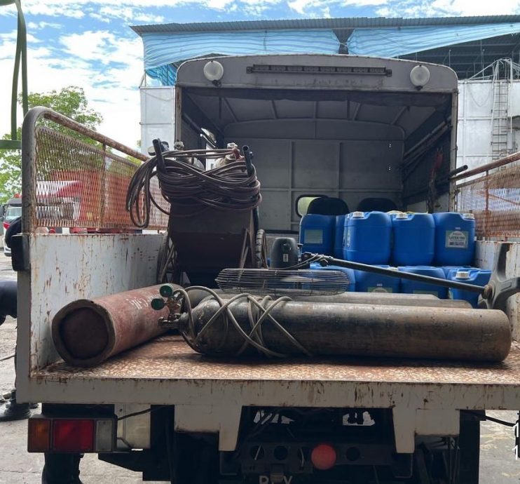 “我们充公了1部卸货机、1部工业用风扇、6罐氧气筒、1部手推车和50桶化学药水。此外,我们也查封厂主已经包装完毕,准备出货予买家的金属制成品。充公的全部物品将被带回市议会仓库,以在案件被带上法庭时,成为呈堂证据。”