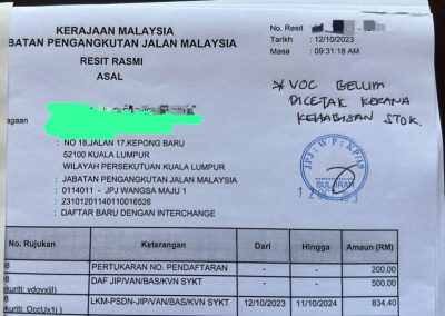他说,在收据上还写明“VOC Belum Dicetak Kerana Kehapisan Stok”,至于几时会取得影印本则不清楚。