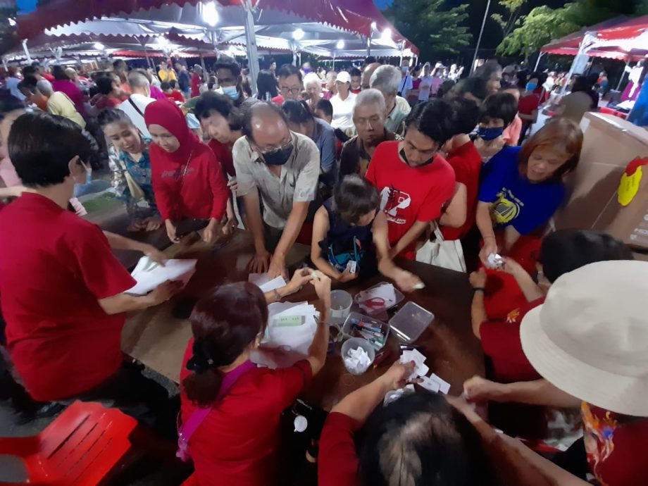 (安邦24日讯)雨水浇不息民众的热情,逾千人踊跃出席由行动党莲花苑州议员游佳豪服务中心与6名安邦再也市议员联办的“莲花共庆元宵节,十五抛柑结良缘” 莲花苑州选区千人新年活动。