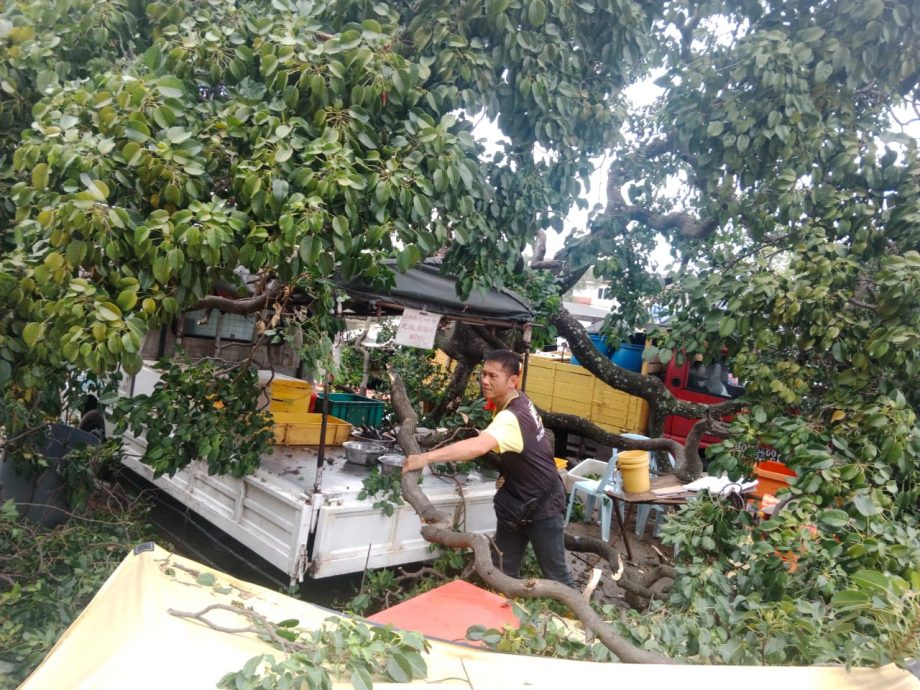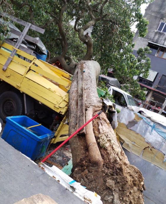 巴刹树倒砸中小贩罗里 4人逃过一劫