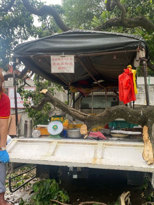 他表示,幸运的是,大树倒下时,坐在鸡档的一位老妪刚好离开,而鸡档老板娘也外出送货。