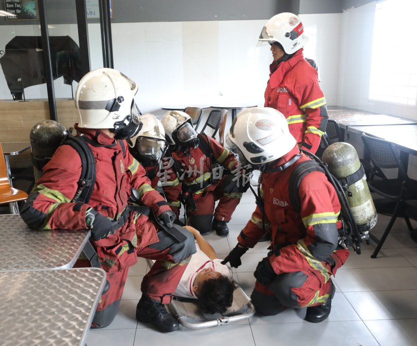 (沙亚南17日讯)雪州消拯局今早在沙亚南永旺广场进行大型防火救灾演习,逼真的演习让不少人误以为商场发生了重大事件!