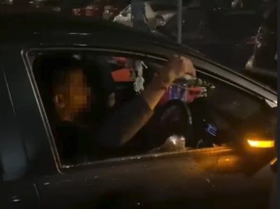 视频中可见,这名男子的行迹被揭发后,愤怒的民众纷纷围住轿车,不让这名男子逃逸,并且还敲打车窗,叫该名男子出来自首。
