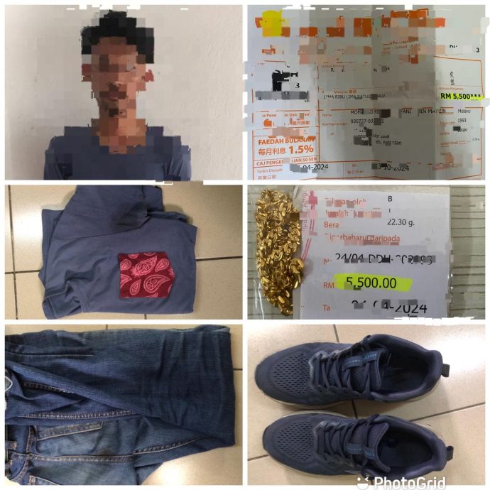 (八打灵再也20日讯)罗里司机佯装成顾客到金店看金项链,期间将金链放在大腿拍照等多多动作,随后以到银行为由迅速将22.34克、总值7774令吉金链带离金店,警方经过两周的调查,终把嫌犯逮捕,起回被嫌犯卖到当铺的金链。