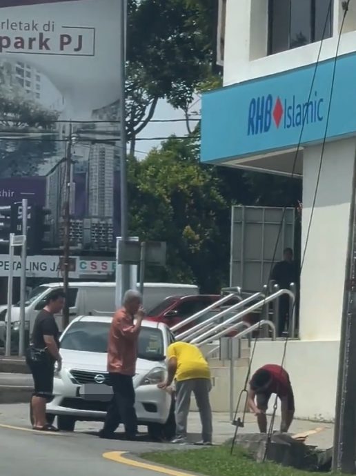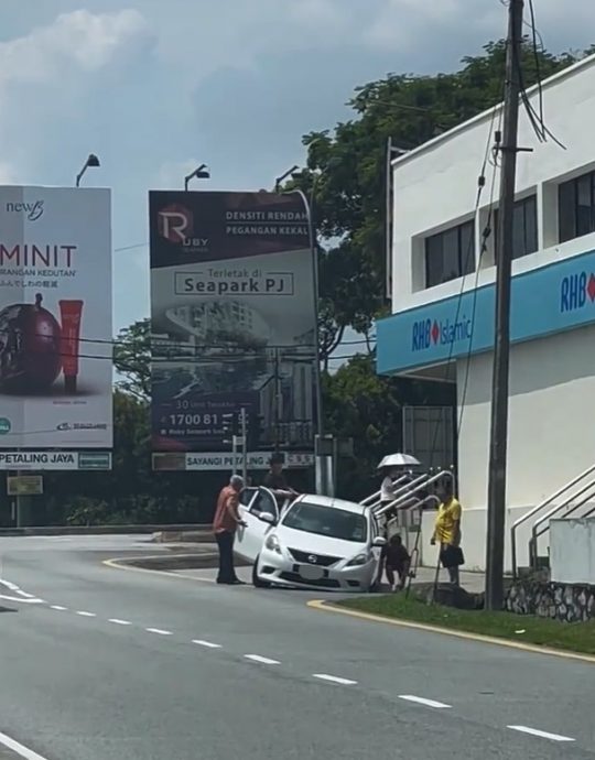 帖主在小红书发布视频,指他在八打灵再也SS2区一处交通灯停下时,看到一辆车子的车轮陷入水沟的惊人一幕。