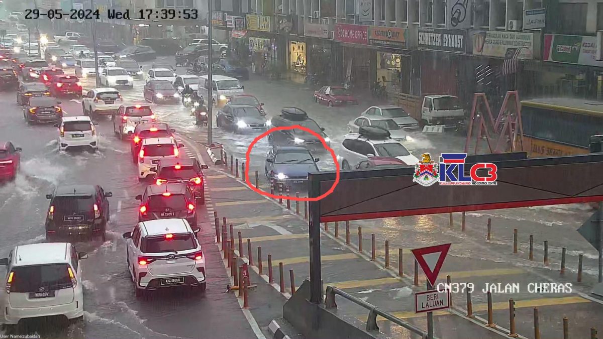 (八打灵再也29日讯)下午的一场雨,导致蕉赖路部分路段的路面出现积水,也有一辆车因故障而抛锚!