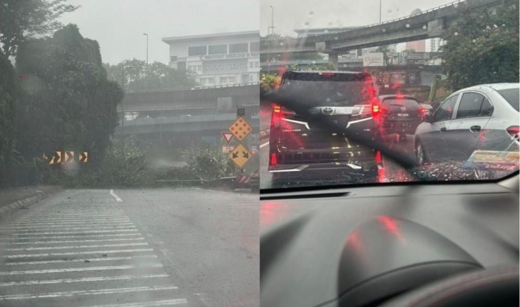他说,倒下的树木堵住靠近吉隆坡中央医院捷运站的大使─淡江大道(DUKE)出口,导致车辆被迫改道至另一条路线。