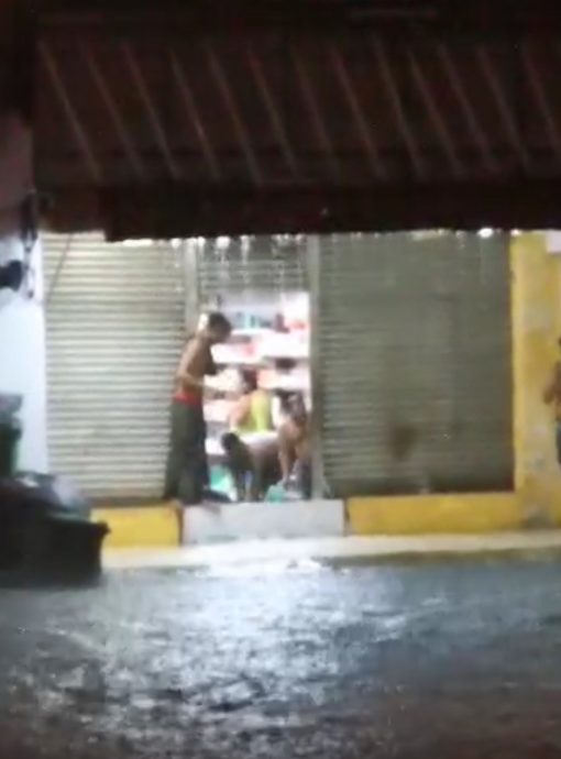 今晚约9时30分,万挠、士拉央和轰埠一带刮起狂风暴雨,当中万挠旧镇后街更在下起倾盆大雨的15分钟内便因为排水系统不胜负荷而引发大水,最严重时水位约有一呎高,导致至少两部车子抛锚在水中央,多店被淹。