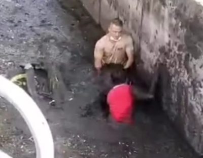 社交媒体昨日开始流传一段视频,显示两名男子在满是泥土的沟渠内,将一名妇女救出。据了解,有关地点是在大港市区的班章柏德纳巷(Lorong Panchang Bedana 2/1)商业区前的沟渠。
