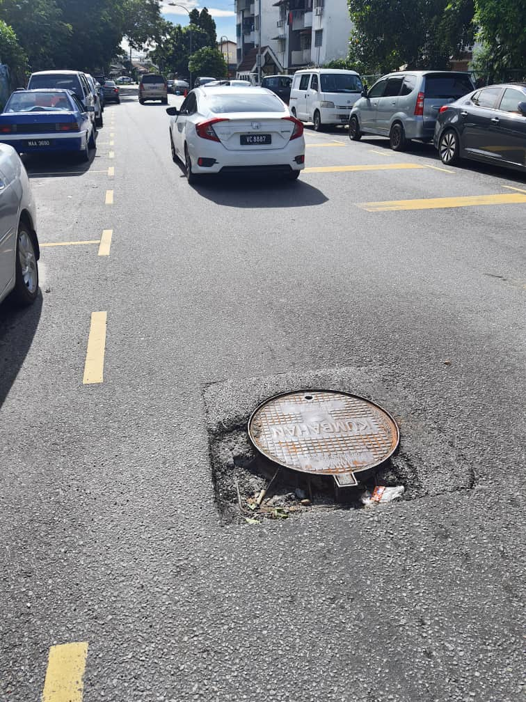 (吉隆坡10日讯)隆市马路上的窨井盖数十年来不曾提升,出现下沉及形成路面不平坦的情况,更是严重威胁摩托车骑士的安全!
