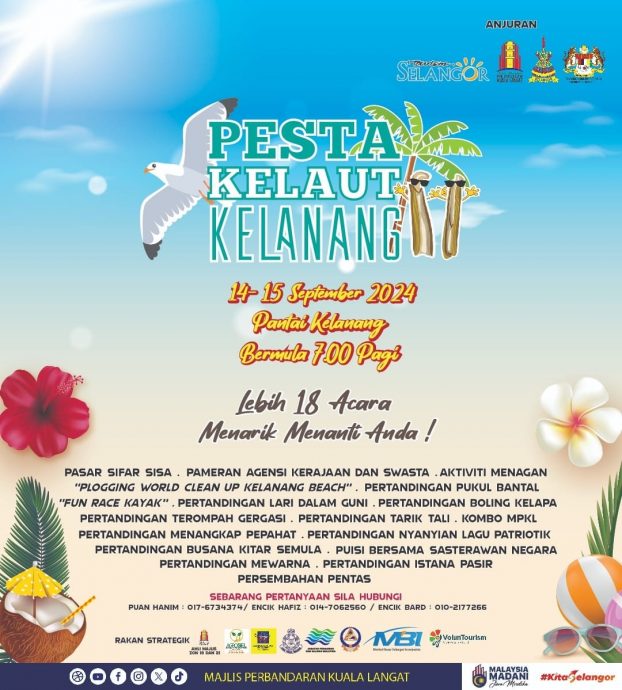 (瓜冷11日讯)雪州瓜拉冷岳市议会(MPKL)将于本月14及15日(星期六及日)一连两天在万津市郊吉灵珑海滩举办“2024年吉灵珑海滩嘉年华”,一系列的民间运动比赛项目、爱国歌曲歌唱比赛、环保服装比赛及文化表演等,等候游客及区内居民到场参与。