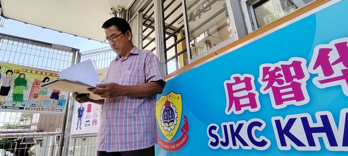 “拯救启智华小签名运动”发起人黄汶华、公正党泗岩末区部署理主席郑成隆和余保凭以及当地居民李国权,今午在学校门口保安亭提交请愿书给校方董事、家协和校友会,促当局尽快解决问题;较后校方已在请愿书下方,盖上校章收下。