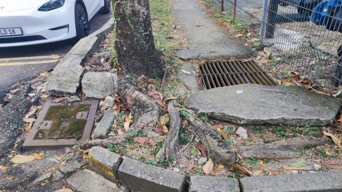 她强调,组屋外沿路的大树尤具破坏力,树根蔓延至行人道及沟渠,导致行人道严重破裂、高低不平,构成通行障碍。