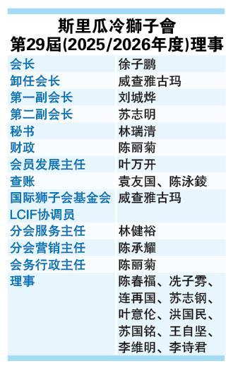 斯里瓜冷狮子会全体狮友表示欣慰,迎来一名年青及充满干劲的新任会长,盼能在新届领导班子的带领下,继续肩负“我们服务(We Serve)”的使命,为社区发展与社会公益等方面贡献力量。