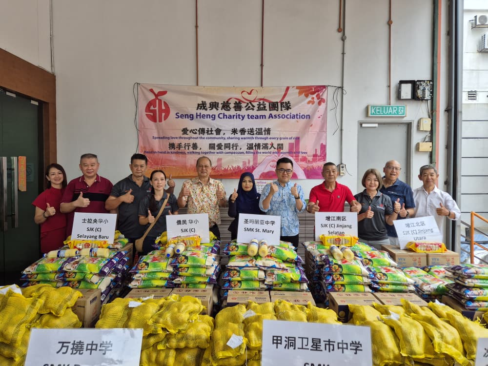 (士拉央26日讯)成兴慈善公益团队日前举办“爱心传社会;米香送温情”分发米粮活动,共有29所中小学校共1000名学生受惠,获得每份价值40令吉的白米、食油、速食面及马铃薯。