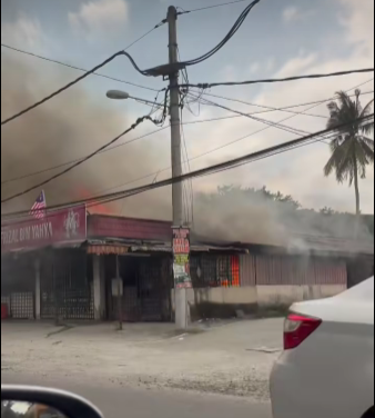 (加影29日讯)乌冷路甘榜武吉拉也一家杂货店失火,因木板建筑结构导致火势强大,驾车路过司机被迫停驶。