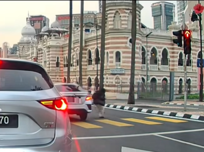 吉隆坡副总警长拿督莫哈末尤索夫今晚指出,交警组证实已接获相关投报。画面显示,一辆国产Bezza轿车闯红灯,险些撞倒一名正要过马路的行人。
