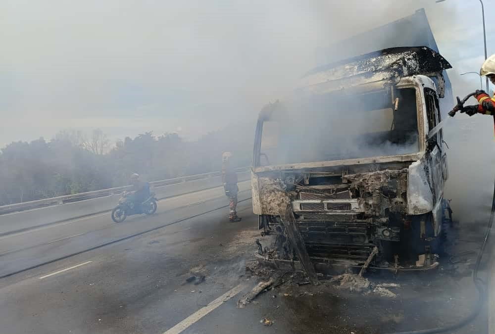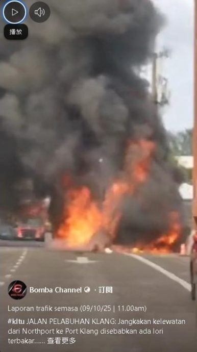 (巴生10日讯)巴生北港通往西港的双溪杜亚桥今早10时,发生一辆集装箱罗里在桥上起火的事件,熊熊烈焰与滚滚黑烟直冲云霄,远至好几公里外都能清楚望见,情景极为骇人。