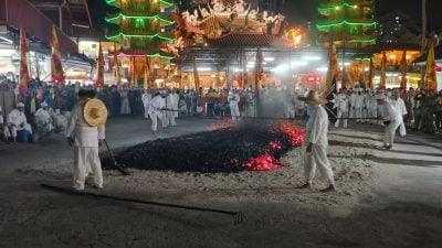 过火坑仪式在历时半小时左右完成,待当天子夜后的恭送九皇大帝仪式后,今年为期逾10天的九皇大帝宝诞庆典也正式告一段落。