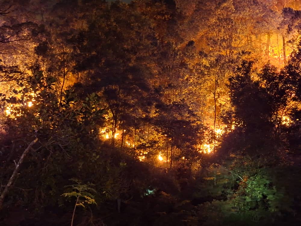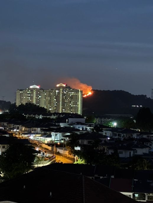 无拉港斯里帝玛花园后面的高山,在今天傍晚6时发生山林失火,由于地势高,导致消防员难进入灾场灭火。