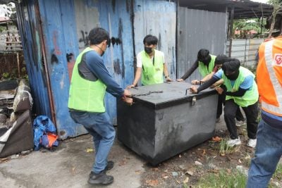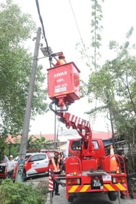 发展商于今早调动上百人到巴板路,并出动神手和挖泥机到现场,并且还有雪州水务管理公司和国能协助断水断电。