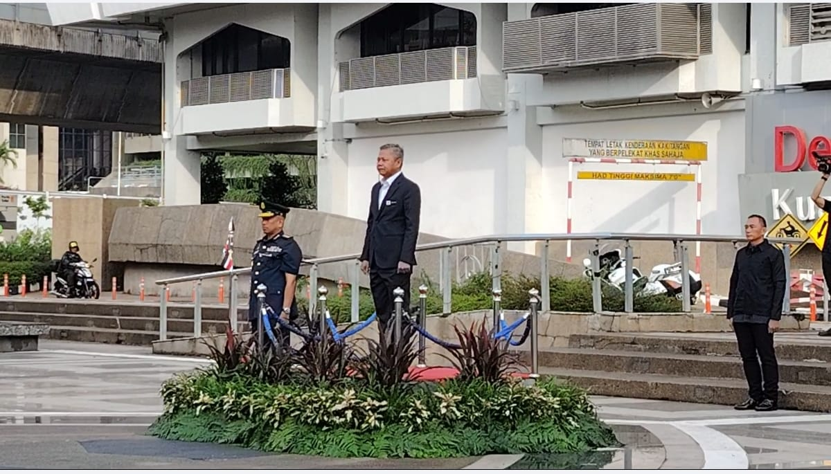 法伦是于今早8时20分,在吉隆坡市政局广场完成检阅礼后,精神抖擞步入市政局大厅打卡上班。