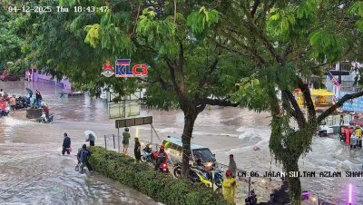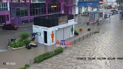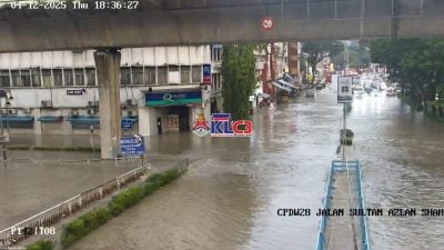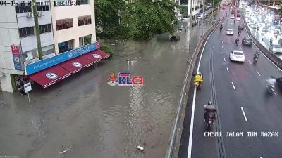 根据吉隆坡控制与指挥中心发出的消息,鹅唛河的水位高涨而溢出至周边的道路,苏丹阿兹兰沙路部分路段在今午大约6时许,开始发生闪电水灾。
