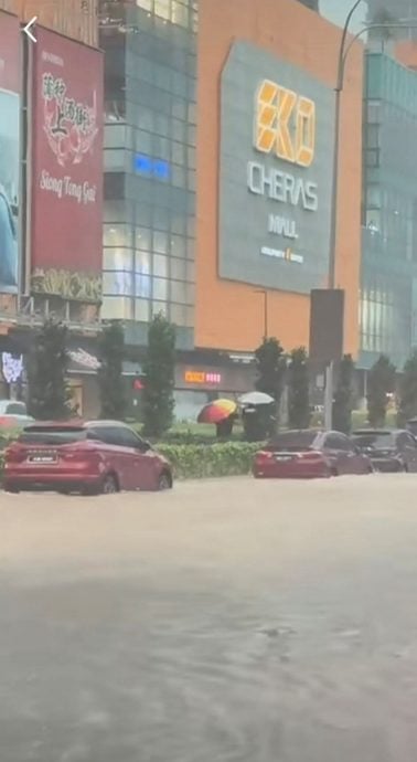 另外,也有脸书用户分享加影武吉美华同样出现积水,有汽车疑似困在积水中无法前行。
