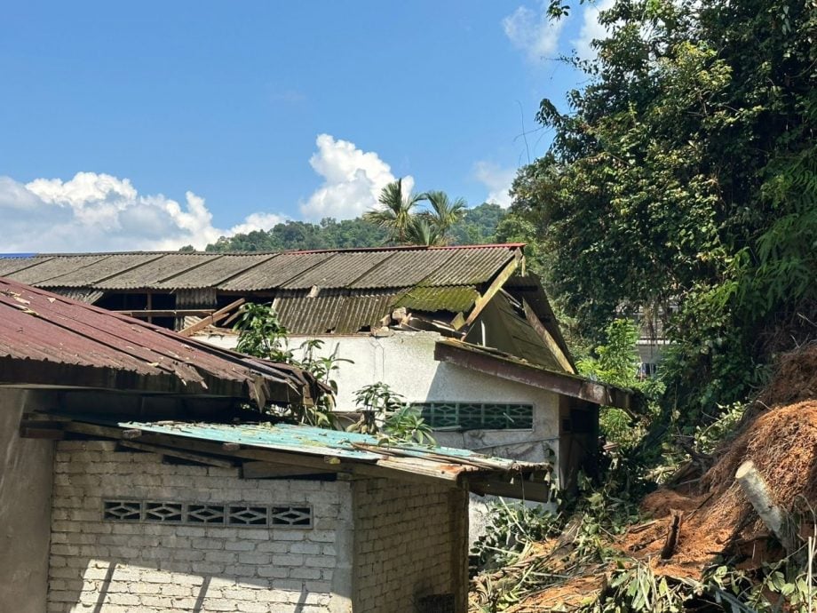 现场可见,两民宅后方的山坡大片泥土滑落,同时散落着大量大石块与碎石,多棵大树也随之倒下,坡面上没有任何防护设施。相关当局目前已封锁现场并展开清理及评估工作,以确保居民安全。