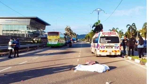 一名42岁女子骑摩托车上班途中,在交通灯处遭旅巴猛撞后重伤当场死亡