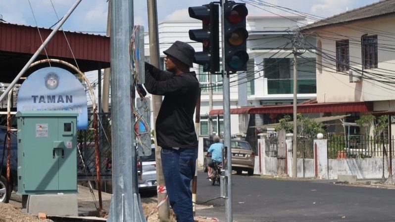 巴东德姆苏主要交通路口因电缆遭人为破坏及盗窃,导致当地交通灯系统失灵,路面险象环生。