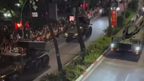 越南为庆祝独立80周年,将在9月2日举行大阅兵,日前举行夜间彩排,大批现役军事装备亮相街头。不过,许多中国网民看过操练影片后,调侃有些像屋苑保安,充满山寨味,比中国的阅兵彩排,欢乐有余,纪律不足。