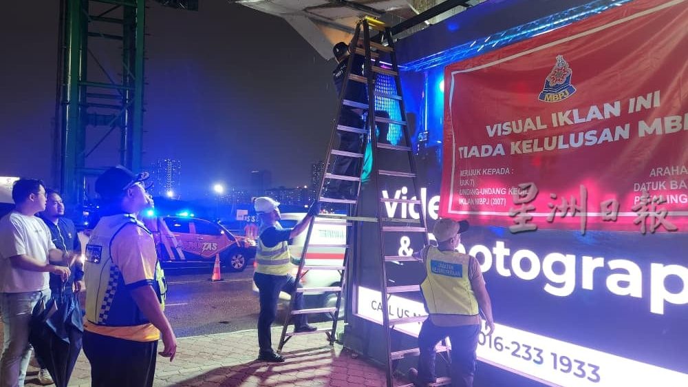八打灵再也市政厅(MBPJ)昨晚联同警方及国能公司,展开一项取缔行动,严厉对付区内不经批准的非法广告牌。