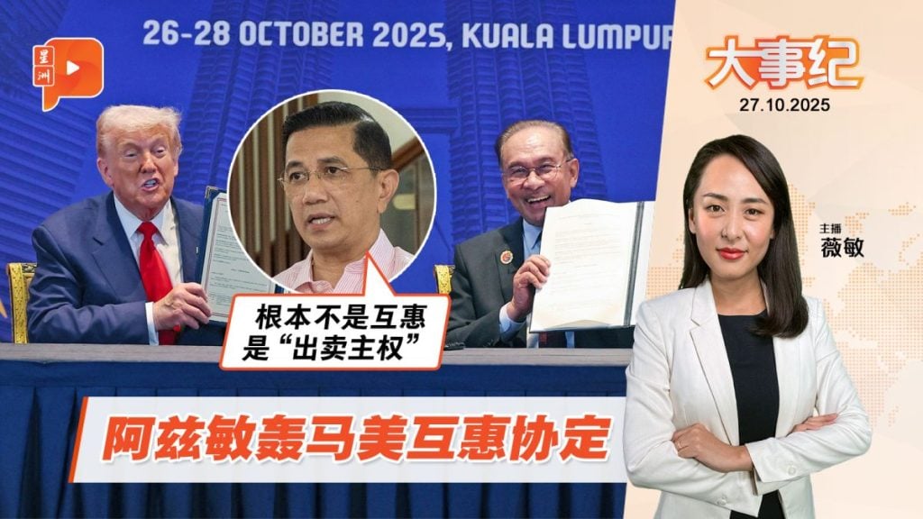 大马与美国签署的《马美互惠贸易协定》掀起两极争议,除了阿兹敏炮轰“出卖主权”,行动党和马华领袖也提出了疑问…… 10月27日 #百格大事纪 #薇敏 为你汇整今日重点时事。 📌 #东盟峰会 #马美关系 👉 马美签互惠协定 朝野政党都有弹 👉 阿兹敏:不是“互惠” 是“出卖主权” 👉 邓章钦点出协定第3.3和第5.3条有问题 👉 马华刘亚强:大马承担大部分经济责任 美国无 👉 #格局解剖室 安华给足了特朗普面子? 👉 时评人李泰德:马美走得更紧密 以巴局势仍会影响 👉 法米:大马非军事强国 但有“超级武器” #重点新闻 👉 13岁少年飙车踢警 警员当场摔伤 👉 拉菲兹被起诉诽谤 索赔1000万令吉 👉 全马薪资上扬 隆最高薪 哪州最低?