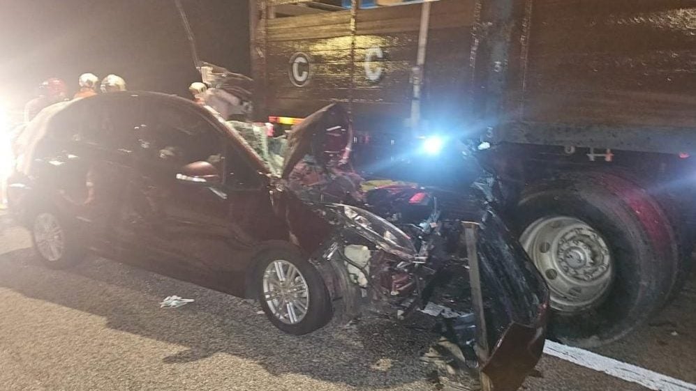 轿车撞上停靠在路肩的一辆罗里,导致轿车司机重伤身亡。