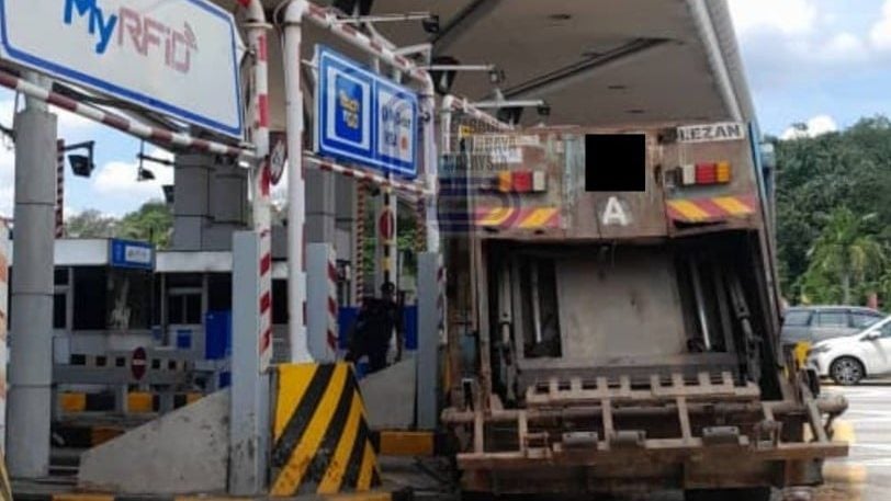 垃圾车失控横跨收费站数通道 警:外劳司机事后逃逸